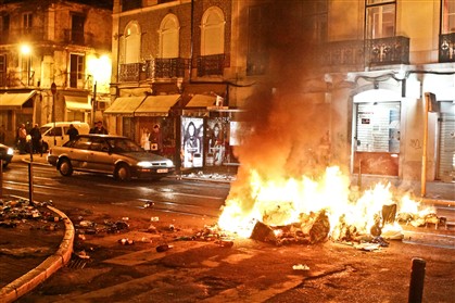 transformando uma zona de Lisboa em cenário que faz lembrar a revolta popular de