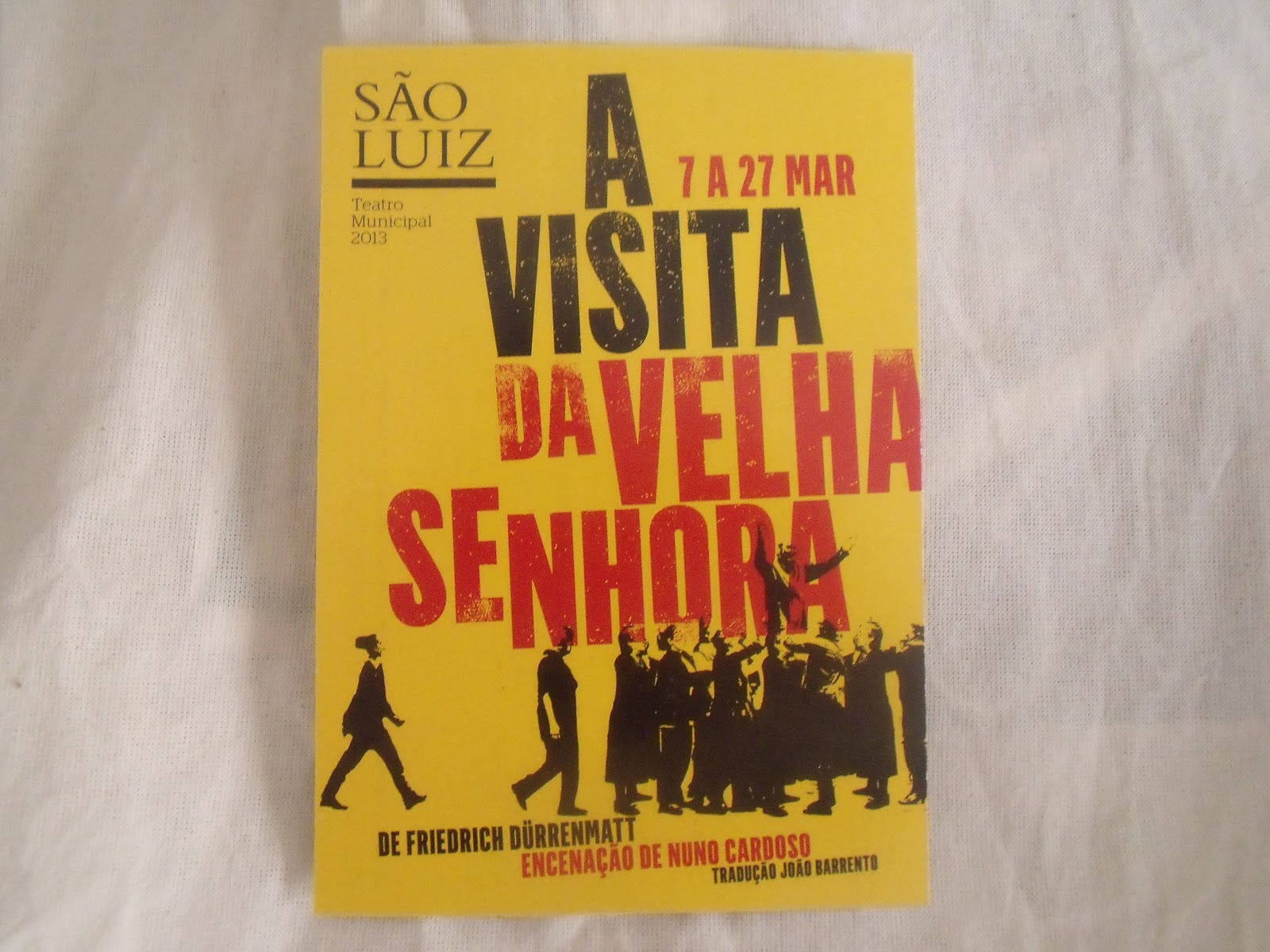 Vi ontem no São Luiz e gostei. A história de uma cidade arruinada, obrigada a aceitar um resgate económico sob condições de grande indignidade. Vale tudo? Tudo pode ser imposto pelo poder do dinheiro? A peça, de Friedrich Dürrenmatt, foi escrita em 1956, muito antes daquilo que bem conhecemos: Irlanda, Grécia, Portugal e Chipre. Em cena até dia 27, para quem puder.
